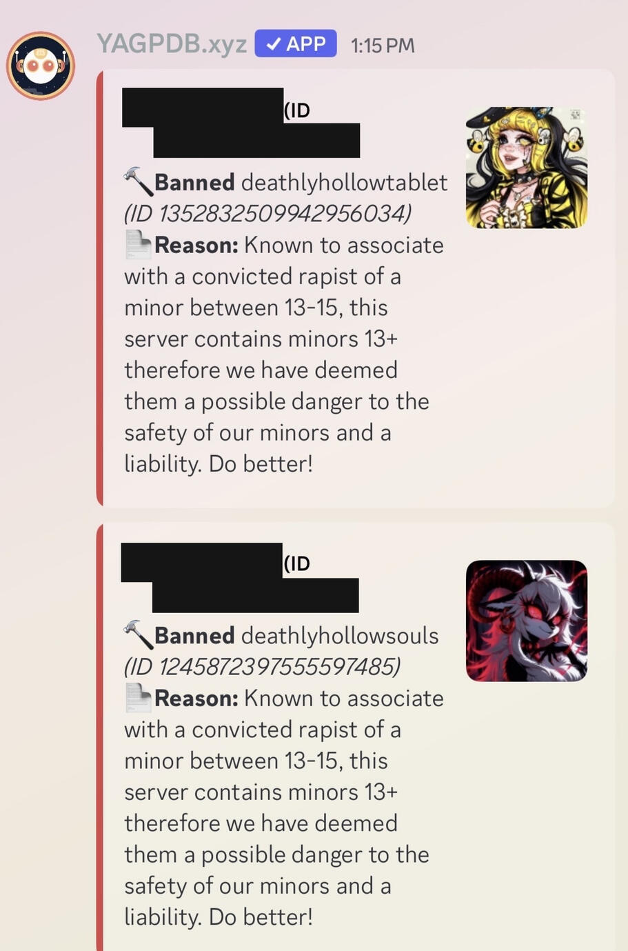 Reasons:Doesn't want people to share their age in their server because it "will encourage minors to reveal their age"I pointed out that no one sharing their age is crazy and probably will lead to grooming cases since no one knows others ages.Has 2 Different Ages On Bluesky Accounts.